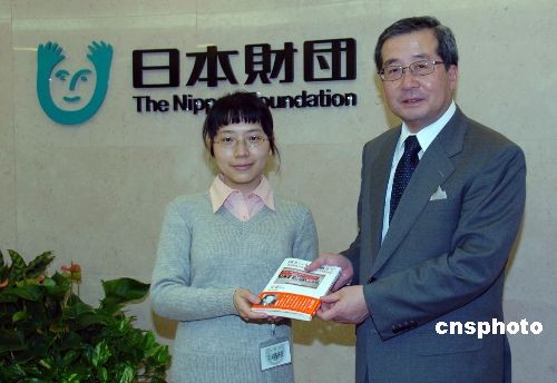 應(yīng)主辦方日本僑報社日中交流研究所的邀請,第三屆中國人日語作文比賽最優(yōu)秀獎得主——暨南大學(xué)日語系學(xué)生陳歆馨3月24日開始訪問日本。25日下午,陳歆馨在日本僑報社社長張景子的陪同下,拜訪了作文比賽特別贊助者日本財團。日本財團理事長尾形武壽鼓勵陳歆馨再接再厲,為中日友好作貢獻。據(jù)介紹,陳歆馨是在1400多名名參賽者中脫穎而出榮獲最優(yōu)秀獎的。中新社發(fā) 段躍中 攝