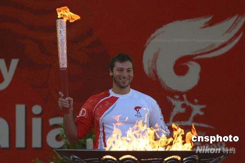 圖:索普點(diǎn)燃圣火盆 堪培拉傳遞順利結(jié)束