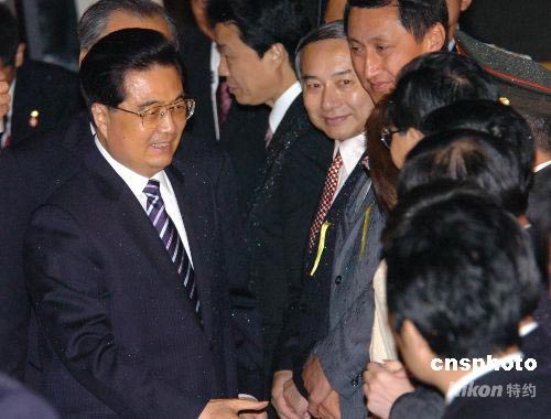 7月7日晚當(dāng)?shù)貢r間8點(diǎn)30分,中國國家主席胡錦濤乘專機(jī)抵達(dá)日本札幌新千歲機(jī)場。日本外務(wù)省儀典長楠本祐一、北海道知事高橋春美、中國駐日大使崔天凱及當(dāng)?shù)厝A人華僑百余人到機(jī)場歡迎胡錦濤的到來。胡錦濤主席將出席定于9日在洞爺湖舉行的八國集團(tuán)同發(fā)展中國家領(lǐng)導(dǎo)人對話會議。與會期間的主要活動包括:出席中國、印度、巴西、南非、墨西哥發(fā)展中五國領(lǐng)導(dǎo)人集體會晤;出席八國集團(tuán)與發(fā)展中五國領(lǐng)導(dǎo)人會議;出席經(jīng)濟(jì)大國能源安全和氣候變化領(lǐng)導(dǎo)人會議;出席會議的工作午餐會。會議期間,胡錦濤還將會見與會的有關(guān)國家領(lǐng)導(dǎo)人,就雙邊關(guān)系及共同關(guān)心的國際問題交換意見。中新社發(fā) 朱沿華 攝