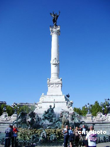 圖為9月21日,法國(guó)波爾多民眾到紀(jì)念碑前合影留念。
