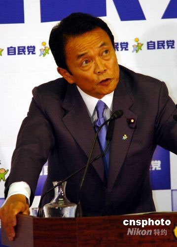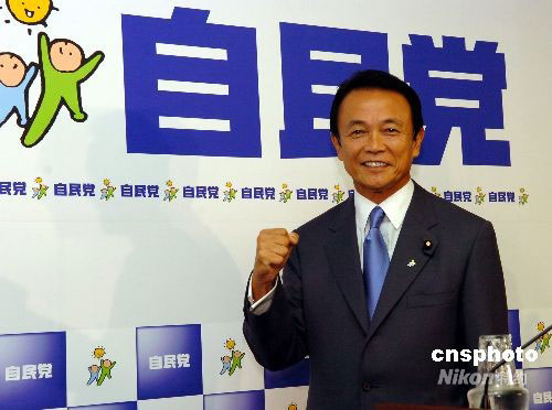 日本東京當(dāng)?shù)貢r(shí)間9月22日下午,現(xiàn)年68歲的麻生太郎以351票的壓倒性?xún)?yōu)勢(shì)當(dāng)選自民黨第23任總裁。他將于兩天后經(jīng)國(guó)會(huì)選舉成為日本新首相。但面對(duì)在野黨咄咄逼人的挑戰(zhàn),輿論認(rèn)為麻生政權(quán)的前景很難預(yù)料。中新社發(fā) 朱沿華 攝