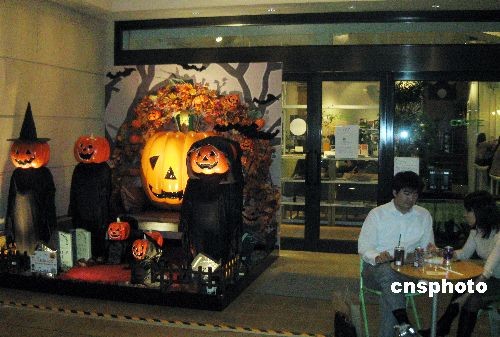 10月21日晚,一對戀人在南瓜幽靈前悠閑地喝茶聊天。10月是收獲的季節(jié),而南瓜代表這一種碩果累累的喜悅。從10月中旬開始,東京的CBD丸之內(nèi)商業(yè)大道,舉行了一場別開生面的南瓜藝術(shù)展。被雕塑成各種形狀的南瓜展示在大街的兩側(cè)。而這一組“南瓜幽靈”最受人歡迎。中新社發(fā) 徐靜波 攝