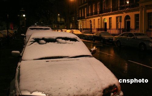 當(dāng)?shù)貢r間10月28日晚,英國包括首都倫敦在內(nèi)的英格蘭中部極不尋常地早早下起今冬的第一場雪,英國大部分地區(qū)氣溫也隨之驟降。圖為28日深夜在倫敦市區(qū),中國駐英使館附近街區(qū)的汽車被大雪覆蓋。中新社發(fā) 李鵬 攝