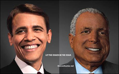 美國2008年總統(tǒng)大選即將到達高潮時刻,選民們即將投票選出他們心目中的新總統(tǒng)。日前,美國著名廣告公司——精信廣告公司制作了一款海報,將奧巴馬和麥凱恩的膚色對調(diào):奧巴馬變成了白人,麥凱恩變成了黑人,希望以此呼吁選民忽略種族差異。