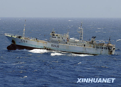 這張美國海軍公布的照片顯示,11月17日,海盜劫持著中國漁船“天裕8號”行駛在印度洋上。