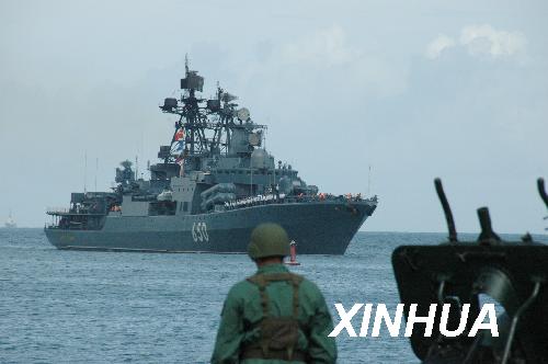 11月25日,俄羅斯“恰巴年科海軍上將”號大型反潛艦駛入委內(nèi)瑞拉北部港口拉瓜伊拉。俄羅斯總統(tǒng)梅德韋杰夫訪問委內(nèi)瑞拉前夕,四艘軍艦組成的俄羅斯北方艦隊艦艇編隊25日抵達拉瓜伊拉,準備參加與委內(nèi)瑞拉海軍從12月1日開始的聯(lián)合軍事演習。新華社記者張笑然攝
