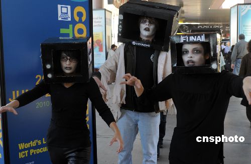 2009年國(guó)際消費(fèi)類電子產(chǎn)品展覽會(huì)(CES)1月8日至11日在著名賭城美國(guó)拉斯維加斯舉行。由于受到金融海嘯的沖擊,今屆電子產(chǎn)品盛會(huì)雖然規(guī)?s水、熱度降溫,但依舊新品紛呈、亮點(diǎn)不斷。今年電子展的主題為“數(shù)字娛樂(lè)與內(nèi)容”,一批最新電子產(chǎn)品在本次展覽會(huì)上亮相。連綿數(shù)十米的微軟展臺(tái)以炫目的科技產(chǎn)品展示“我就是PC”的新理念,向與會(huì)者推介個(gè)人電腦、手機(jī)與電視走向融合的新趨勢(shì)。LG公司展示了一款具備通話、時(shí)鐘、音樂(lè)播放功能的腕表型手機(jī);索尼公司推出了二十一英寸、厚度不足十毫米的OLED電視樣機(jī);三星公司厚度僅有七毫米的全球最薄液晶電視吸引眾多眼球;多個(gè)廠家推出的輕巧上網(wǎng)筆記本電腦成為本屆展會(huì)的一道風(fēng)景線。中新社發(fā) 甘泉 攝