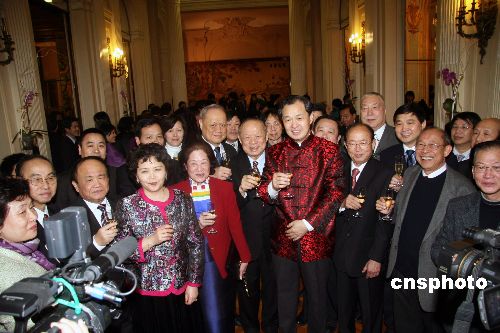 中國駐法大使孔泉十九日晚上在巴黎舉行迎新春招待會,和近兩百位僑胞代表共同慶賀中國傳統(tǒng)佳節(jié)——春節(jié)的到來。中新社發(fā) 吳衛(wèi)中 攝