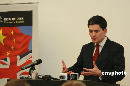 當?shù)貢r間22日下午,英國外交大臣米利班德在曼徹斯特中國藝術中心發(fā)表演講,發(fā)布英國政府首個對華關系策略框架性文件,強調英國未來幾年要把促進與中國的關系作為“重中之重”。中新社發(fā) 李鵬 攝