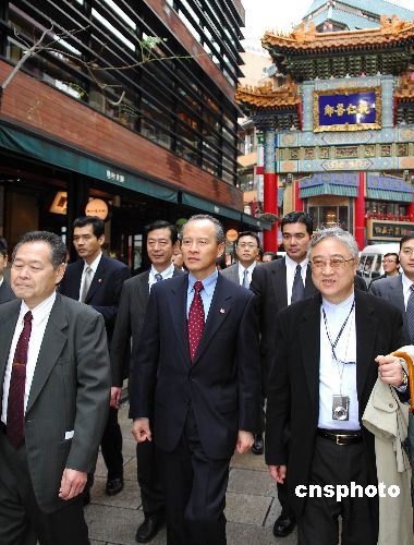 2009年1月23日上午,中國駐日本國特命全權(quán)大使崔天凱冒雨前往橫濱中華街,向當(dāng)?shù)厝A人華僑拜年。崔天凱與橫濱華僑總會(huì)會(huì)長任政光親切會(huì)談,慰問熱心資助教育的愛國華僑吳桂顯先生的遺孀,在臺(tái)灣同胞茶店品茶論道等,親身體驗(yàn)當(dāng)?shù)厝A人生活。崔天凱還視察了橫濱中華街關(guān)帝廟、媽祖廟等建筑,并出席華僑主辦的歡迎午宴。中新社發(fā) 侯宇 攝