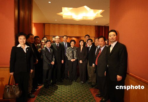 1月29日,率領(lǐng)“文化中國·四海同春”藝術(shù)團正在紐約訪問的中國國務院僑辦主任李海峰,參加了美國威特集團董事長李學海及當?shù)厝A人華僑知名人士為她舉行的午宴。中新社發(fā) 魏晞 攝