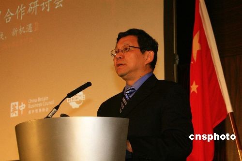 當(dāng)?shù)貢r(shí)間2月27日下午,中國機(jī)電進(jìn)出口商會(huì)和英中貿(mào)易協(xié)會(huì)在倫敦共同舉辦中英經(jīng)貿(mào)合作研討會(huì),中英兩國企業(yè)界人士600多人與會(huì)。圖為中國商務(wù)部長(zhǎng)陳德銘在研討會(huì)上致辭。中新社發(fā) 李鵬 攝