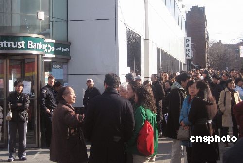 美國紐約華資背景的中國信托銀行紐約法拉盛分行,存放個人貴重物品的數(shù)十個保險箱9日被盜。10日一早,大批華人憂心忡忡聚集在被盜銀行門前,希望了解具體情況。美國法律規(guī)定,保險箱內(nèi)所存現(xiàn)金即便被盜也不獲賠付,很多華人一生積蓄恐因此付諸東流。中新社發(fā) 魏晞 攝