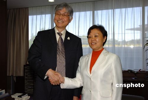 4月27日上午,以中國(guó)國(guó)家旅游局副局長(zhǎng)杜一力為團(tuán)長(zhǎng)的中國(guó)國(guó)家旅游局代表團(tuán),訪問位于東京的日本國(guó)土交通省,并與日本觀光廳長(zhǎng)官本保芳明舉行會(huì)談。雙方就進(jìn)一步推動(dòng)中日觀光旅游業(yè)的發(fā)展與合作達(dá)成共識(shí)。圖為杜一力(右)與本保芳明握手。中新社發(fā) 朱沿華 攝