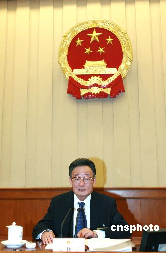 十月二十八日,十屆全國人大常委會第三十次會議在北京人民大會堂閉幕。全國人大常委會委員長吳邦國主持會議并講話。中新社發(fā) 廖文靜 攝