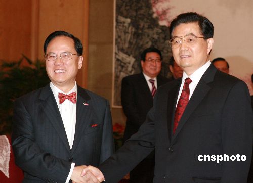 十一月二十三日,國家主席胡錦濤在北京會見來京述職的香港特別行政區(qū)行政長官曾蔭權(quán)。中新社發(fā) 廖文靜 攝