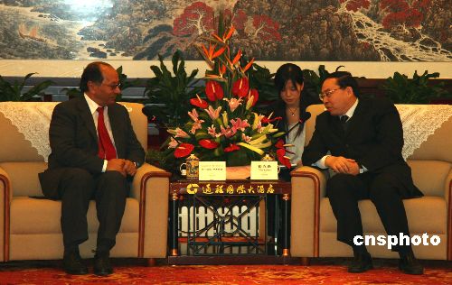 11月28日晚間,湖南省委副書記梅克保(右)在長沙會見以“法塔赫”中央委員、對外關系部部長阿卜杜拉·伊弗朗吉為團長的巴勒斯坦民族解放運動高級干部考察團一行。會見中,阿卜杜拉·伊弗朗吉表示,湖南雜交水稻的先進技術和成果讓我感到驕傲和安心,這樣中國及世界其他國家的糧食安全問題就有保障了。應中聯(lián)部邀請,阿卜杜拉·伊弗朗吉一行十人近日訪華,十一月二十五日至二十九日在湘期間,他們考察湖南經(jīng)濟建設、基層黨建、黨員培訓和新農村建設等情況,并參觀韶山、省委黨校、雜交水稻研究中心。中新社發(fā) 肖前輝 攝