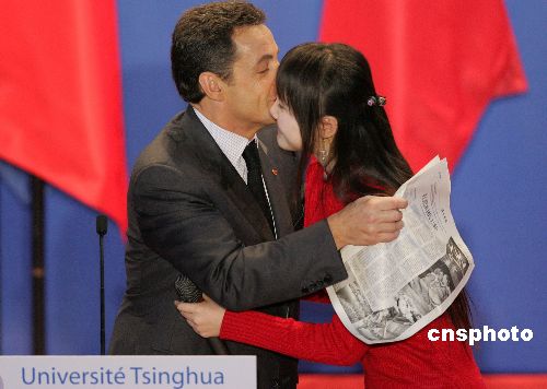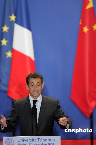 正在中國訪問的法國總統(tǒng)尼古拉·薩科齊,11月27日上午到中國著名學府清華大學發(fā)表演講,并接受學生提問。中新社發(fā) 任晨鳴 攝
