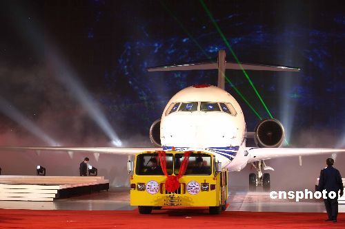 十二月二十一日,由中國航空工業(yè)第一集團公司(中國一航)自行研制生產(chǎn)的中國首架自主知識產(chǎn)權(quán)噴氣支線客機ARJ21-700飛機,在上海飛機制造廠舉行盛大的總裝下線儀式。此舉表明,中國在民用飛機科研和制造領(lǐng)域取得突破性進展,中國自主研制的先進噴氣支線客機已成為世界民用客機大家庭的新成員。這款開創(chuàng)中國民用飛機發(fā)展新紀元的支線客機,其中文名稱被確定為頗富中國特色的“翔鳳”。 中新社發(fā) 文音 攝