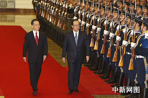 圖:溫家寶舉行儀式歡迎日本首相福田康夫訪華