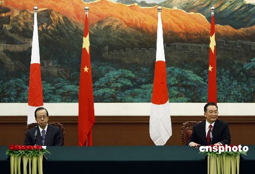 溫家寶與日本首相福田康夫在北京共見記者