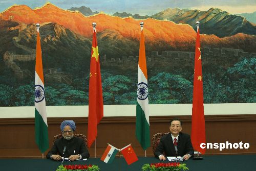 1月14日,中國國務(wù)院總理溫家寶與印度總理辛格在北京人民大會堂舉行會談,并共同會見記者。中新社發(fā) 盛佳鵬 攝