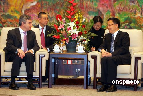 1月19日,上海市委書記俞正聲、上海市市長韓正在上海分別會見來華訪問的英國首相戈登·布朗。中新社發(fā) 湯彥俊 攝