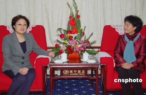 2月2日晚,在僑鄉(xiāng)廣西遭遇嚴(yán)重雨雪冰凍災(zāi)害急需援助之際,中國(guó)國(guó)務(wù)院僑辦主任李海峰女士(左)一行從北京飛赴南寧進(jìn)行慰問(wèn),并與廣西自治區(qū)人大常委會(huì)副主任、廣西紅十字會(huì)會(huì)長(zhǎng)劉新文進(jìn)行會(huì)談,隨后李海峰代表國(guó)務(wù)院僑辦和海外僑胞向廣西災(zāi)區(qū)民眾捐助一百萬(wàn)元人民幣。中新社發(fā) 劉萬(wàn)強(qiáng) 攝