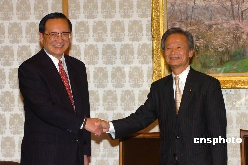 2月21日下午,正在日本進(jìn)行正式訪問的中國國務(wù)委員唐家璇在日本參院議長公邸會見了日本參院議長江田五月。中新社發(fā) 滕劍峰 攝