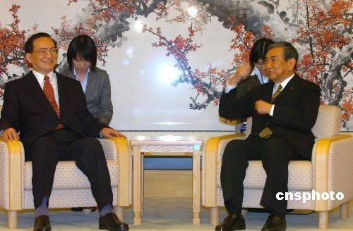 圖:中國(guó)國(guó)務(wù)委員唐家璇會(huì)見(jiàn)日本眾議院議長(zhǎng)河野洋平