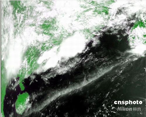 5月29日上午10點(diǎn)16分,廣州氣象衛(wèi)星地面站成功接收到第一幅風(fēng)云三號01星的HRPT(甚高分辨率)云圖,圖為該衛(wèi)星拍回的照片。中新社發(fā) 楊綺薇 攝