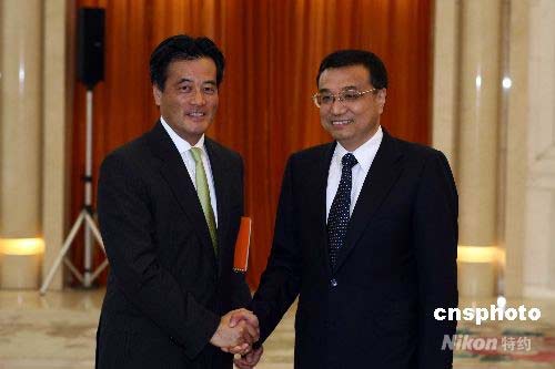 7月16日,中共中央政治局常委、國務院副總理李克強在北京人民大會堂會見日本民主黨副黨首岡田克也。中新社發(fā) 盛佳鵬 攝