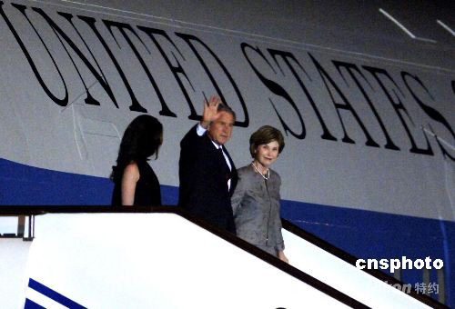 8月7日晚,美國(guó)總統(tǒng)布什抵達(dá)北京,將出席北京奧運(yùn)會(huì)開(kāi)幕式。 中新社發(fā) 王東明 攝