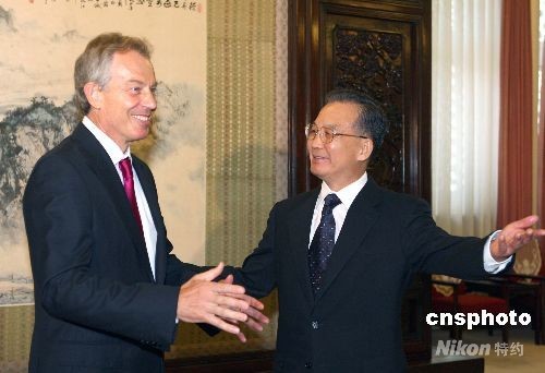 8月20日,中國國務(wù)院總理溫家寶在北京中南海紫光閣會見英國前首相布萊爾。中新社發(fā) 廖文靜 攝