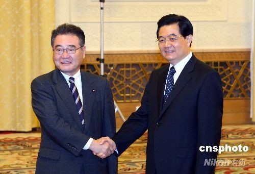 9月7日,中國國家主席胡錦濤在北京人民大會堂會見日本自民黨前干事長、日中友協(xié)會長加藤纮一。中新社發(fā) 廖文靜 攝