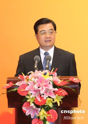 9月17日,中國國家主席胡錦濤與夫人劉永清在北京釣魚臺國賓館芳菲苑舉行宴會歡迎出席北京殘奧會閉幕式的國際貴賓。圖為胡錦濤在宴會上致辭。 中新社發(fā) 廖文靜 攝