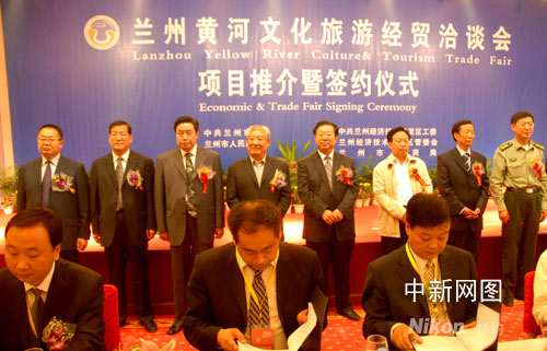 蘭州黃河文化旅游經(jīng)貿(mào)治談會項目推介會暨簽約儀式19日上午11時許在蘭州市安寧區(qū)舉行。本次推介會簽約合同項目34個,總投資105.07億元,全部為引進資金。本次簽約的項目投資總額都在5000萬元以上,投資總額在1億元以上的項目占全部項目數(shù)的79.4%。王紅綱 攝
