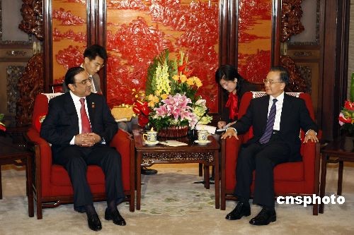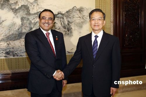 10月16日,中國(guó)國(guó)務(wù)院總理溫家寶在北京中南海紫光閣會(huì)見巴基斯坦總統(tǒng)扎爾達(dá)里。中新社發(fā) 盛佳鵬 攝