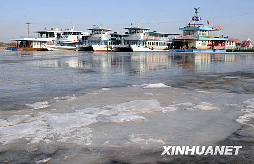 圖:松花江江水結(jié)冰全線(xiàn)停航