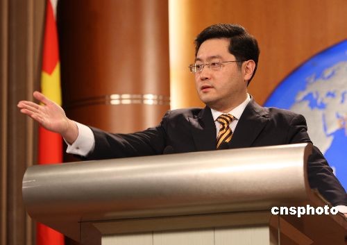 十一月二十五日,外交部發(fā)言人秦剛在例行的記者招待會上宣布:第五次中美戰(zhàn)略經(jīng)濟(jì)對話十二月四日至五日將在北京舉行。中國國務(wù)院副總理王歧山和美國財(cái)政部部長鮑爾森將分別作為兩國國家元首的特別代表共同主持對話。中新社發(fā) 史利 攝