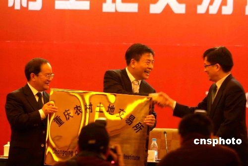 12月4日,醞釀已久的重慶農(nóng)村土地交易所正式掛牌成立。該交易所由重慶市政府出資成立,系非營利性事業(yè)法人機(jī)構(gòu),實(shí)行現(xiàn)代企業(yè)管理模式,主要從事地票交易。所謂地票,指包括農(nóng)村宅基地及其附屬設(shè)施用地、鄉(xiāng)鎮(zhèn)企業(yè)用地、農(nóng)村公共設(shè)施和農(nóng)村公益事業(yè)用地等農(nóng)村集體建設(shè)用地,經(jīng)過復(fù)墾并經(jīng)土地管理部門嚴(yán)格驗(yàn)收后產(chǎn)生的指標(biāo)。中新社發(fā) 郭晉嘉 攝
