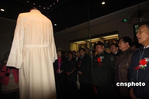 2008年12月25日,毛澤東有73個(gè)補(bǔ)丁的睡衣在韶山毛澤東遺物館展出。 中新社發(fā) 郭國(guó)權(quán) 攝