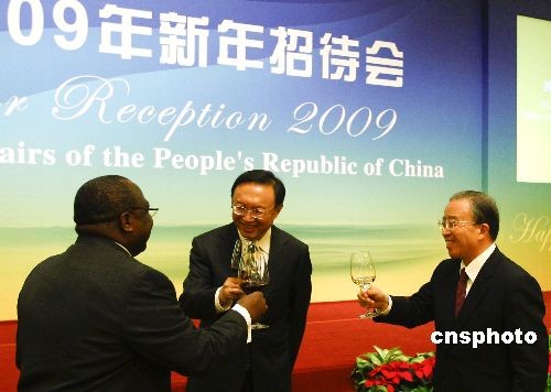 12月28日,中國外交部部長楊潔篪在北京釣魚臺(tái)國賓館舉行“外交部2009年新年招待會(huì)”,招待各國駐華使節(jié)和國際組織代表及其配偶。國務(wù)委員戴秉國、有關(guān)部門負(fù)責(zé)人及中外來賓400余人出席。中新社發(fā) 盛佳鵬 攝