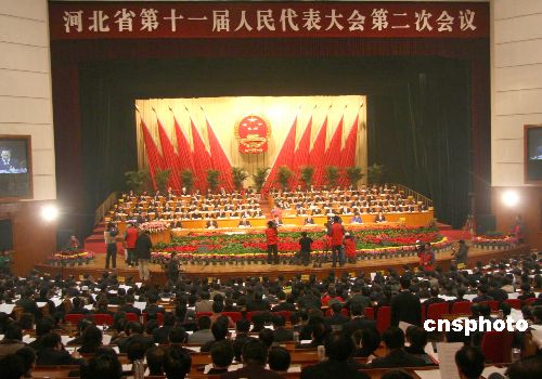 河北省第十一屆人民代表大會第二次會議1月8日在石家莊開幕,七百余名人大代表齊聚河北會堂,聽取和審議省政府工作報告。報告中提出該省今年經(jīng)濟增長9%的目標(biāo)。中新社發(fā) 田張夢 攝