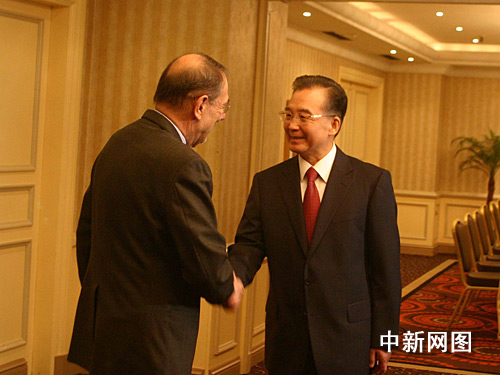 正在這里對(duì)歐盟總部進(jìn)行正式訪問(wèn)的中國(guó)總理溫家寶,當(dāng)?shù)貢r(shí)間一月三十日上午在下榻飯店會(huì)見了歐盟理事會(huì)秘書長(zhǎng)兼共同外交與安全政策高級(jí)代表索拉納(左)。雙方對(duì)中歐關(guān)系重要性均給予高度肯定。張朔 攝