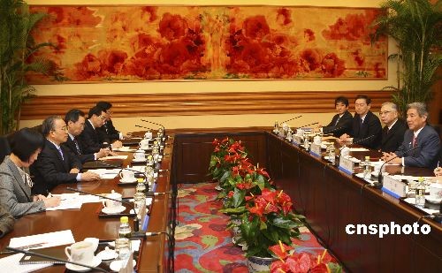 3月1日,中國國務(wù)委員戴秉國在北京中南海會(huì)見日本外相中曾根弘文。中新社發(fā) 盛佳鵬 攝