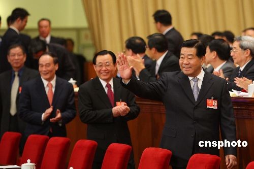 3月7日,全國(guó)政協(xié)十一屆二次會(huì)議在北京人民大會(huì)堂舉行第二次全體會(huì)議。全國(guó)政協(xié)主席賈慶林、全國(guó)政協(xié)副主席王剛、國(guó)務(wù)院副總理王岐山等出席會(huì)議。 中新社發(fā) 盛佳鵬 攝