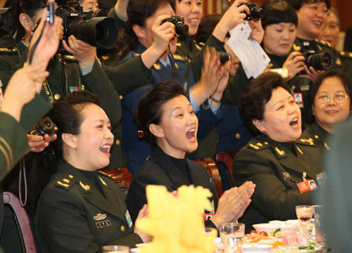 3月7日晚,出席十一屆全國(guó)人大二次會(huì)議和全國(guó)政協(xié)十一屆二次會(huì)議的解放軍女代表、女委員舉行聯(lián)歡,喜迎三八國(guó)際勞動(dòng)?jì)D女節(jié)。 王建民 攝