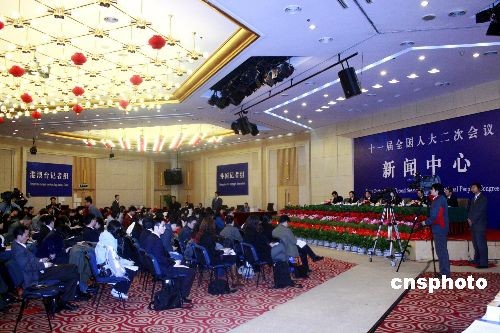 3月11日上午11時(shí),十一屆全國(guó)人大二次會(huì)議新聞中心舉行“當(dāng)前環(huán)境保護(hù)形勢(shì)和任務(wù)”專(zhuān)題采訪,邀請(qǐng)環(huán)境保護(hù)部副部長(zhǎng)張力軍(分管污染防治與減排、環(huán)境執(zhí)法等)、吳曉青(分管環(huán)評(píng)、監(jiān)測(cè)、環(huán)境科技等),環(huán)境保護(hù)部污染防治司司長(zhǎng)翟青,環(huán)境保護(hù)部環(huán)境影響評(píng)價(jià)管理司司長(zhǎng)祝興祥,環(huán)境保護(hù)部生態(tài)保護(hù)司司長(zhǎng)莊國(guó)泰,在大會(huì)新聞中心接受中外記者采訪。中新社發(fā) 金立冬 攝