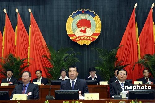 3月11日,全國政協(xié)第十一屆全國委員會常務(wù)委員會第五次會議在北京舉行,會議通過政協(xié)第十一屆全國委員會第二次會議關(guān)于常務(wù)委員會工作報告的決議(草案),審議通過政協(xié)第十一屆全國委員會提案委員會關(guān)于政協(xié)十一屆二次會議提案審查情況的報告(草案),通過政協(xié)第十一屆全國委員會第二次會議政治決議(草案)。全國政協(xié)主席賈慶林主持會議。 中新社發(fā) 盛佳鵬 攝